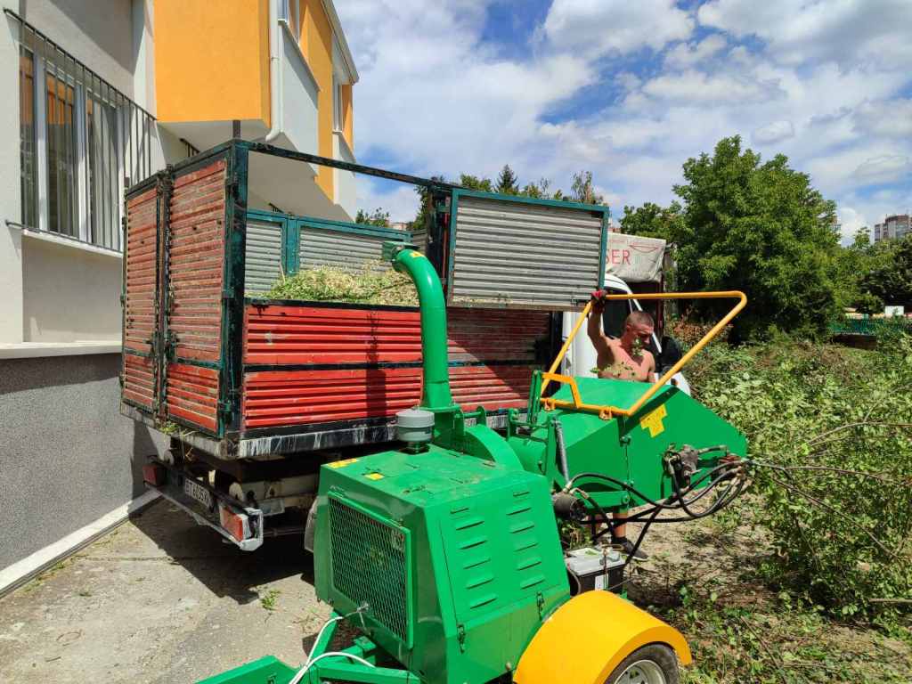 Рязане и кастрене на опасни дървета, почистване на дворове и терени. Извозване на зелени отпадъци.